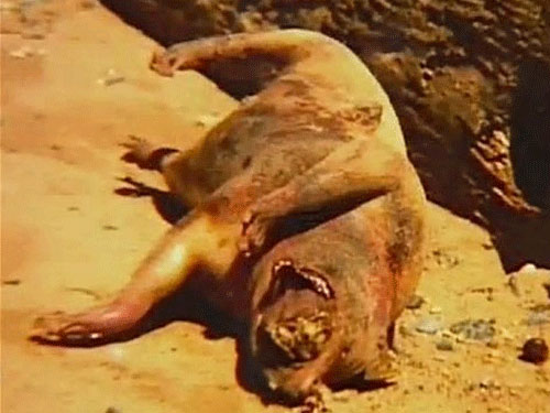 Thoạt trông, sinh vật này giống như một con heo bị chết trương nhưng quan sát kỹ lại thấy chân nó có lại có ngón.