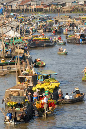 Chợ nổi Cái Răng như bức tranh hoa xuân khổng lồ trên sông Cần Thơ |