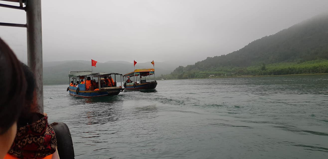 Từ bến Hương Tuyền ta sẽ bước lên một chiếc thuyền nhỏ, nhẹ nhàng như một cánh lá lướt xuôi theo dòng nước êm đềm đưa ta về một cõi thật nên thơ. Nếu khởi hành vào lúc trời sáng sớm, cảnh vật còn bàng bạc trong màn sương sớm, chắc hẳn bạn sẽ không còn thấy thuyền, thấy sông, chỉ thấy mình bồng bềnh nhẹ lướt như đang thực sự đi về nơi tiên cảnh.