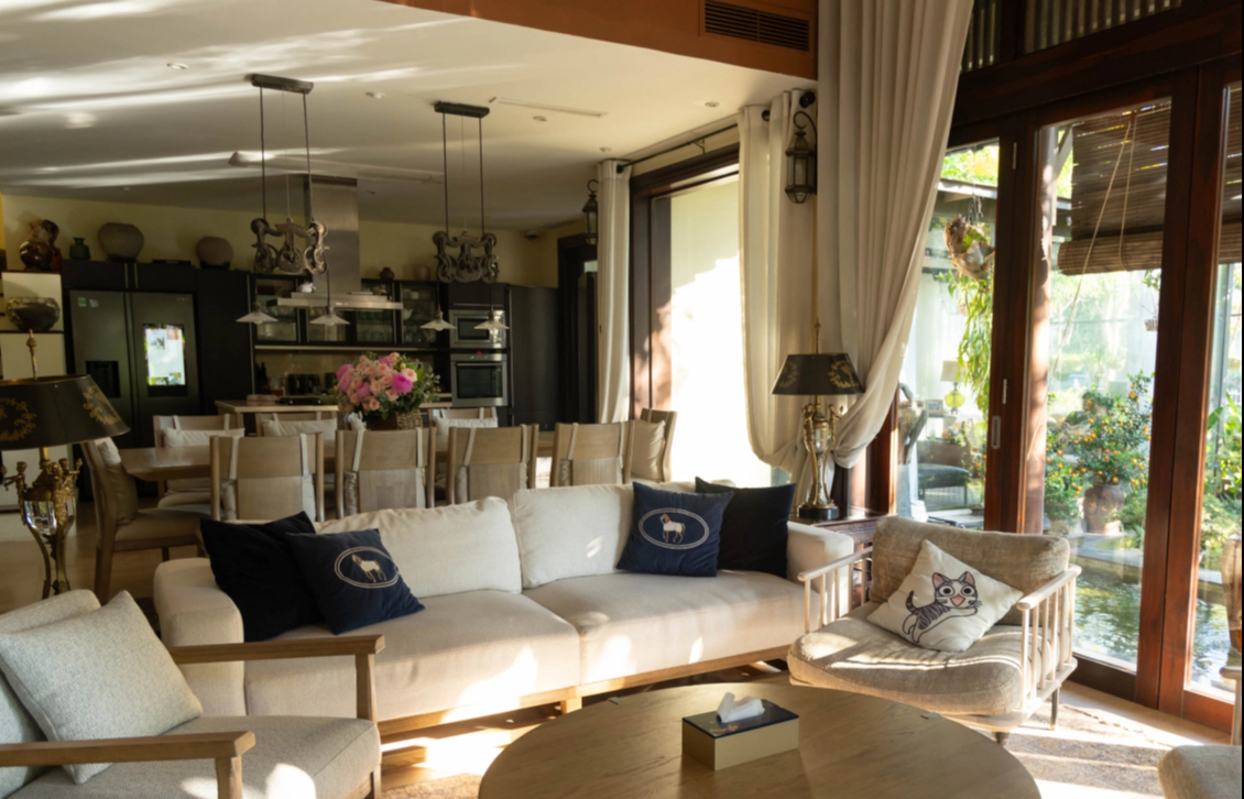 Căn biệt thự sân vườn của gia đình Hà Kiều Anh tọa lạc bên cạnh sông Sài Gòn, xung quanh không gian ngập tràn cây xanh cực kỳ thoáng mát. Là một trong những người đầu tiên quyết định mua đất tại khu vực này, Hoa hậu Hà Kiều Anh cho biết mọi thứ quả thật là một cái duyên.