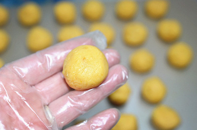 Vo tròn viên bột lại, bạn làm tương tự với những viên bột còn lại.
