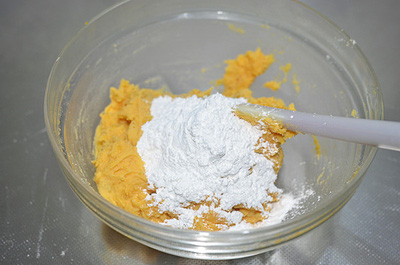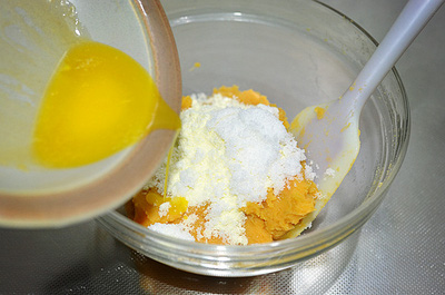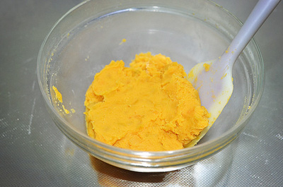 Khoai lang gọt vỏ, rửa sạch thái nhỏ sau đó hấp chín rồi nghiền mịn khoai.