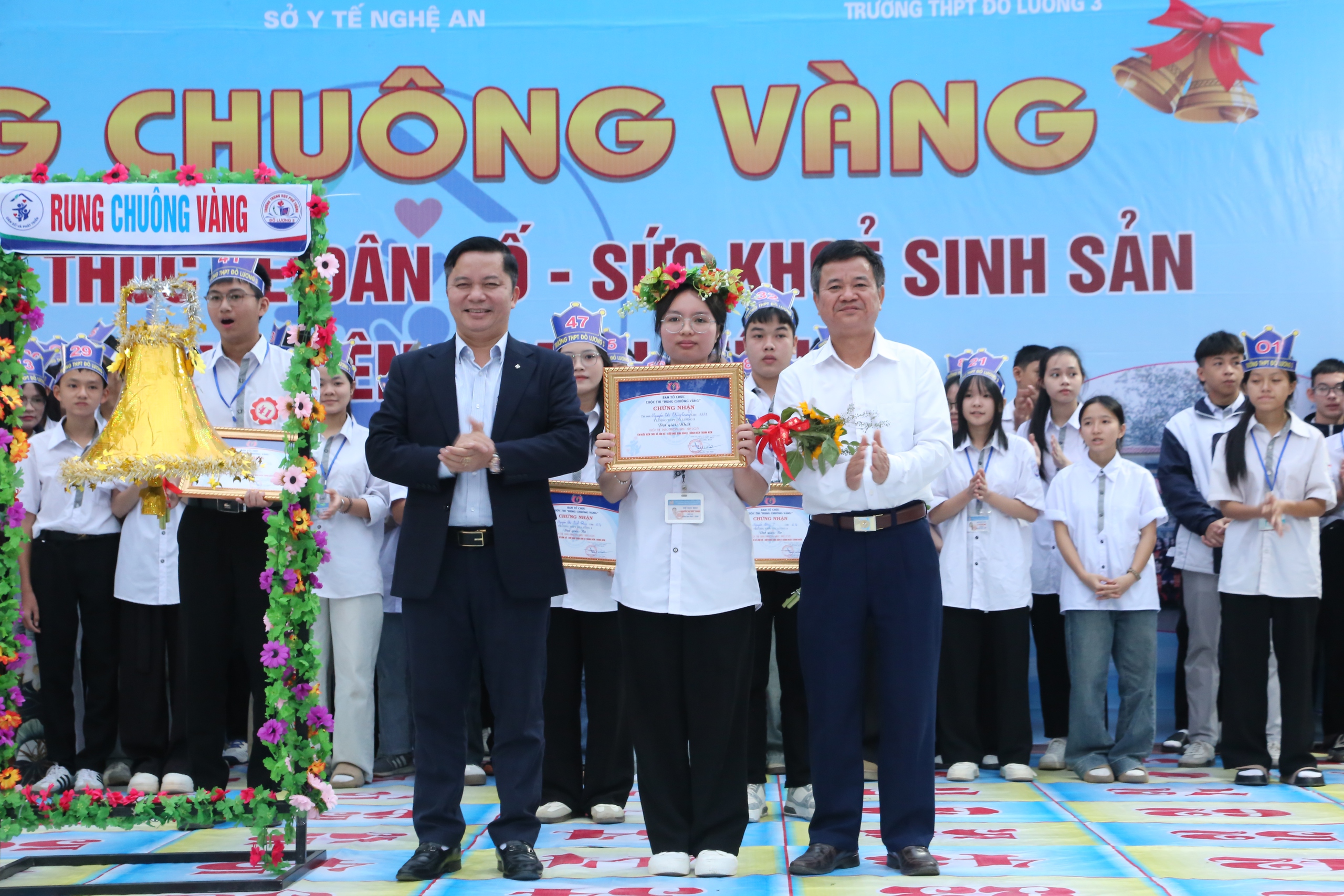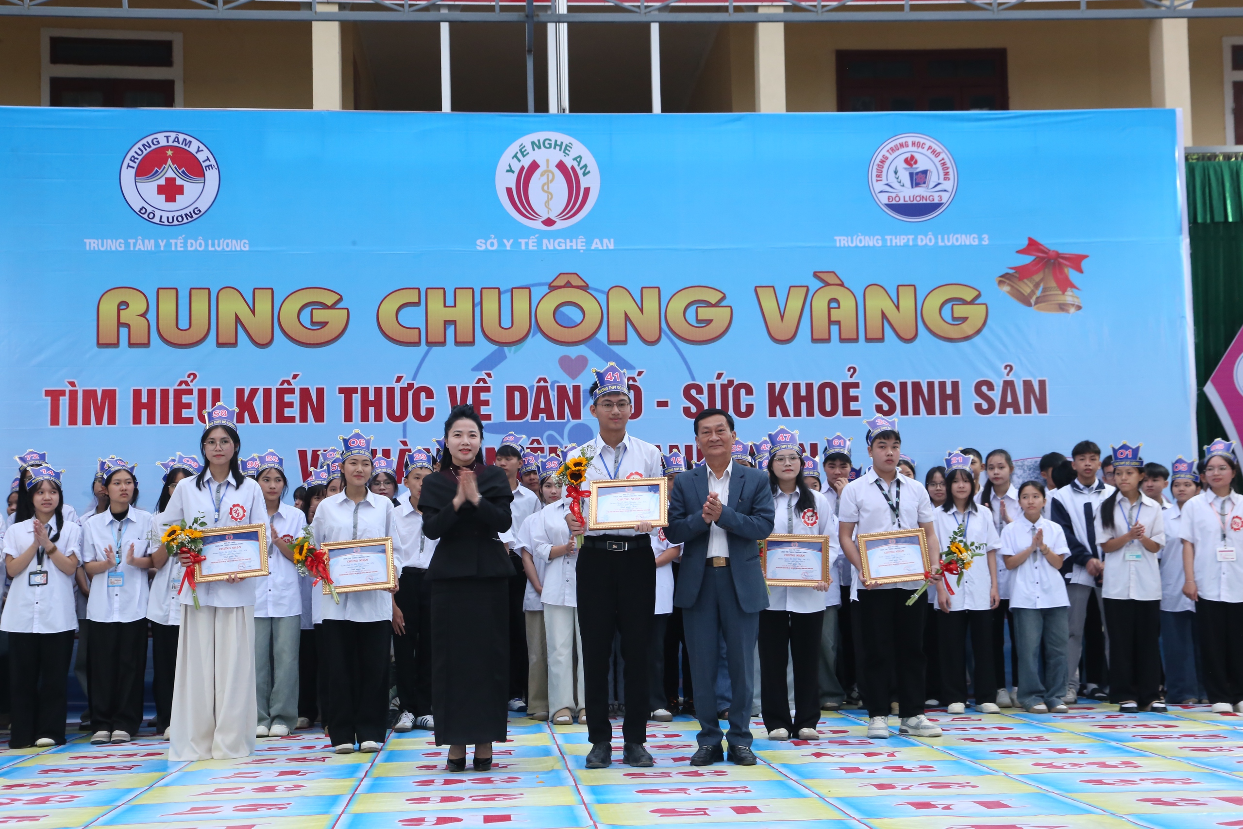 Chiều 22/11, tại Trường THPT Đô Lương 3, Sở Y tế Nghệ An phối hợp Trung tâm Y tế Đô Lương tổ chức cuộc thi "Rung chuông vàng" nhằm trang bị kiến thức dân số, giới tính và chăm sóc sức khỏe sinh sản cho học sinh bậc THPT.